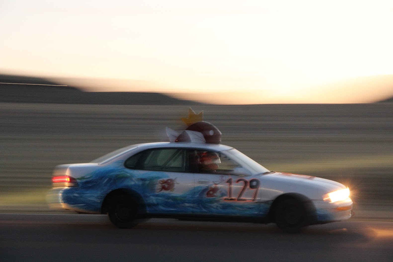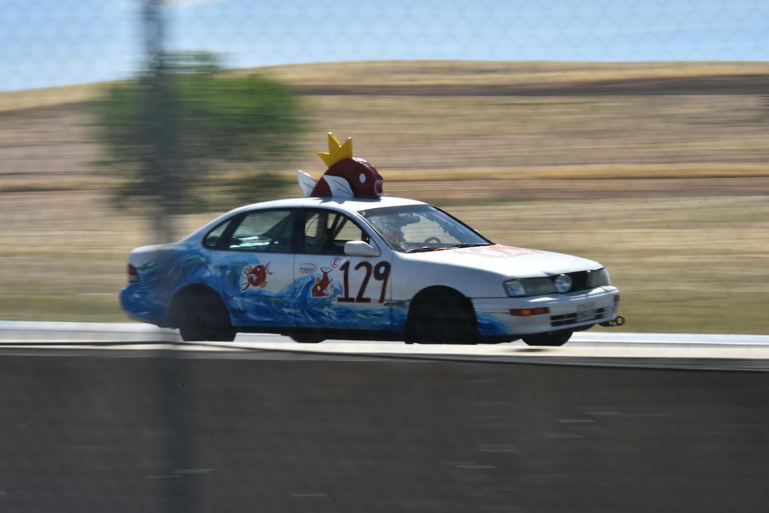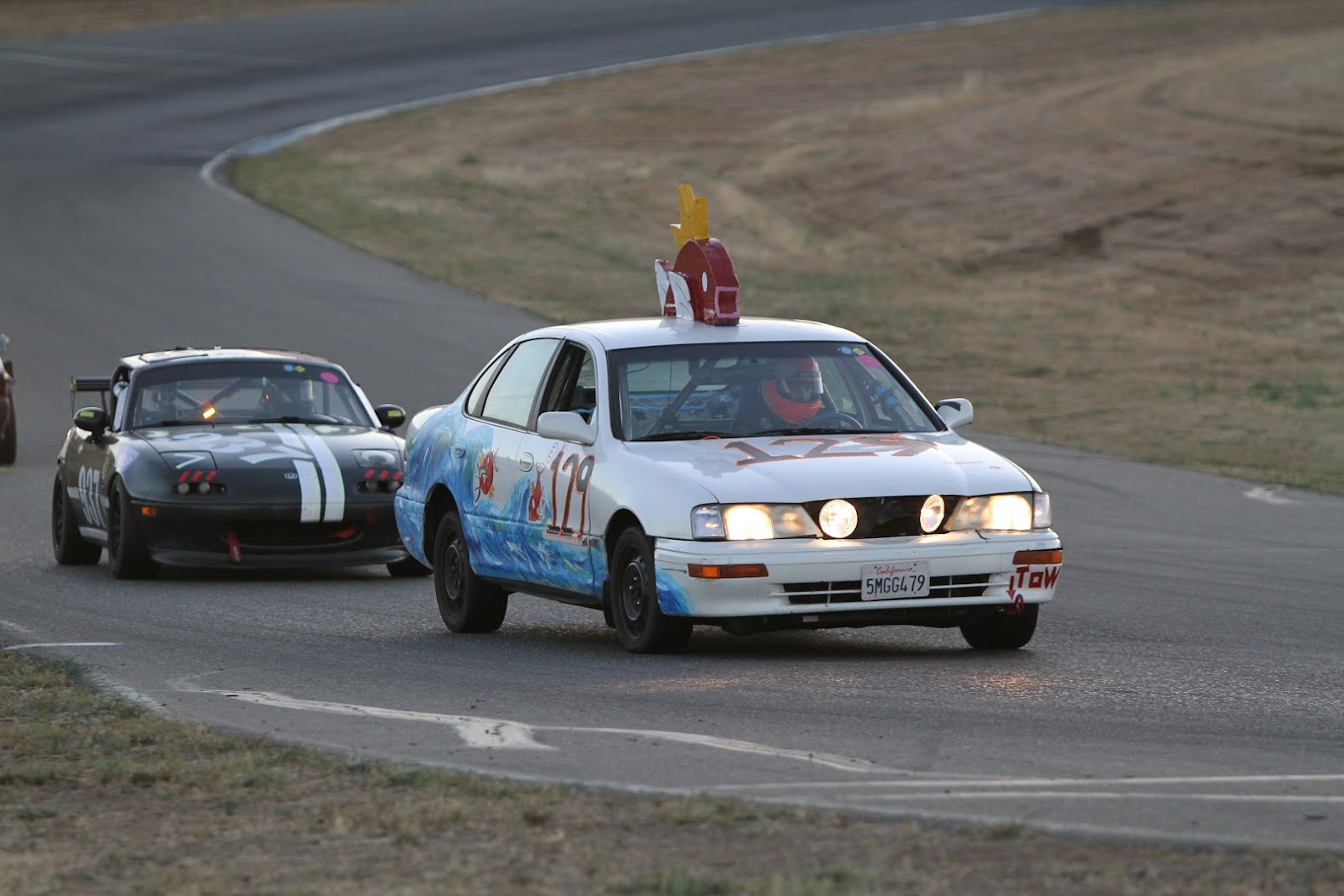 The car cookin it down the back straight flying around the track leading the pack! after we won judges choice pit crew homies